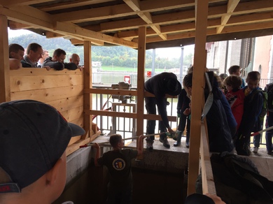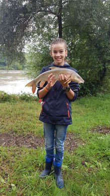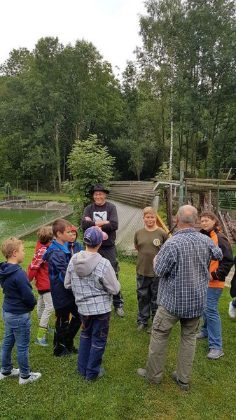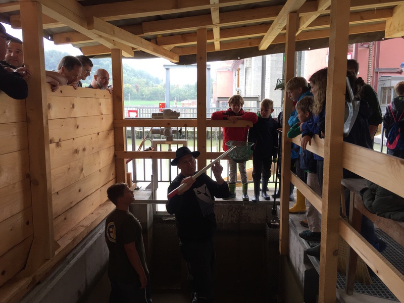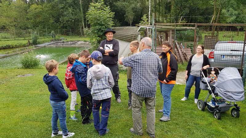 14 Kinder und ihre Eltern trafen sich mit den Betreuern des Angelsportverein Hohentengen am Kraftwerk in Herdern. Dort besichtigten die Teilnehmer den neuen Fischlift auf der Deutschen Seite. Der 1. Vorsitzende Stephan Burger zeigte und erklärte die Funktion und Idee des Fischlift sowie die Zählung, Bestimmung und Entnahme der Fische. Hier konnten die Teilnehmer verschiedene Fische wie Barben, Döbel und Barsche bewundern. Danach ging es mit den Kindern nach Hohentengen zum Fischen. Trotz der erschwerten Bedingungen aufgrund der starken Strömung und des Holztreibguts hatten alle großen Spaß und der Fangerfolg blieb nicht aus. Danach fuhr man wieder nach Herdern um dort die Forellenzuchtanlage von Edgar Egge zu besichtigen. Die Kinder erfuhren hier bei einem ausführlichen und interessanten Vortrag die Aufzucht vom Fischei bis zur verkaufsfertigen Forelle.