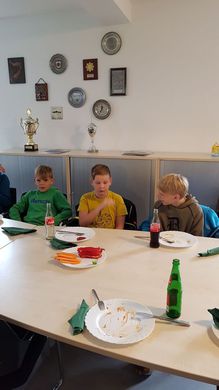 Ein feines Mittagessen erwartete die Teilnehmer im Vereinsraum in Herdern. Hier konnten die Kinder nach dem Essen noch interessante Fischfangvideos anschauen und Fragen stellen. Es war ein gelungener und erfolgreicher Tag für alle Beteiligten.