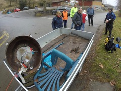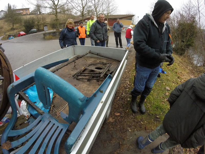 Dieses Jahr wurde das Rhyputze, das jedes Jahr mit den Angelsportvereinen aus Lauchringen, Tiengen, Küssaberg und Hohentengen durchgeführt wird, vom Angelsportverein 1970 Hohentengen e.V. organisiert. Am Samstag 18. März versammelten sich zahlreiche freiwillige Helfer und Helferinnen bei wunderbaren Wetterbedingungen vor dem neuen Bürgerhaus in Herdern um in ein erfolgreiches ‘Rhyputze’ 2017 zu starten. Gemeinsam ging es um 9.00 Uhr mit vier Tauchern der Tauchschule Hohentengen und einem Boot an den Rhein. Die Helfer und Helferinnen wurden in drei Gruppen aufgeteilt. Eine Gruppe machte sich auf den Weg in Richtung Schwimmbad Hohentengen, eine andere übernahm den Weg Rheinaufwärts bis zum Kraftwerk Eglisau. Die dritte Gruppe machte das Boot startklar um mit den Tauchern, die sich mit ihren Trockenanzügen in das 4 Grad kalte Wasser trauten, auch den Müll der sich unter der Wasseroberfläche befand herauszuholen. Das Boot füllte sich mit Schrott, ganzen Computern, einem Bettgestell und vielem mehr. An Land wurden die zahlreichen vollen Müllsäcke der Läufer mit einem Quad und dem von der Gemeinde zur Verfügung gestellten Anhänger eingesammelt und anschließend mit dem Müll und Schrott das sich auf dem Boot befand, zum Bauhof der Gemeinde Hohentengen gebracht. Dort trafen auch die befreundeten Vereine mit dem Müll, den sie an ihren Rheinufern gesammelt hatten ein. Stephan Burger, 1. Vorsitzender des ASV Hohentengen meinte, es ist traurig zu sehen, wie viel Müll und Schrott immer noch unachtsam im Wald und im Rhein entsorgen wird. Die „Rhyputzer“ aller vier Vereine versammelten sich anschließend am Spielplatz in Herdern zum gemeinsamen Mittagessen. Insgesamt waren es über 50 Teilnehmer und Teilnehmerinnen, die sich hungrig über das vielfältige Salatbuffet, die Schnitzel und Würste freuten. Den Abschluss verbrachte man noch gemütlich bei Kuchen und Keksen. Das Rhyputze 2017 hat allen sehr viel Spaß gemacht, stimmte einen aber auch sehr nachdenklich. Mehr Bilder finden Sie unter www.angelsportverein-hohentengen.de