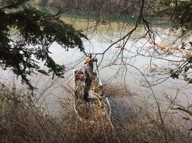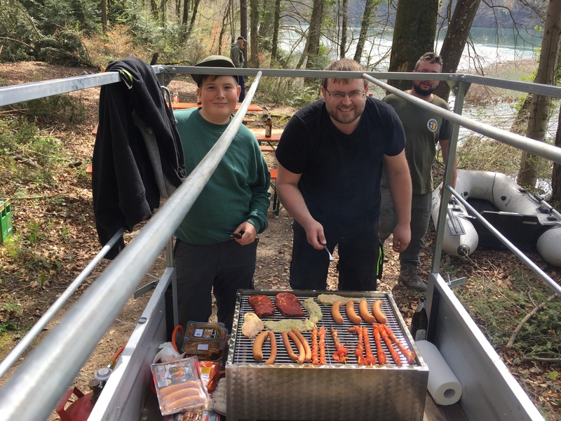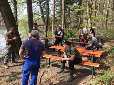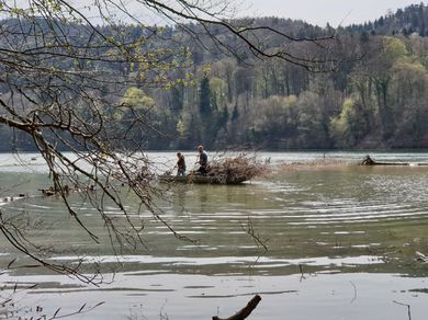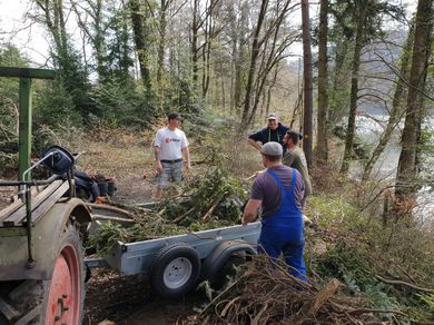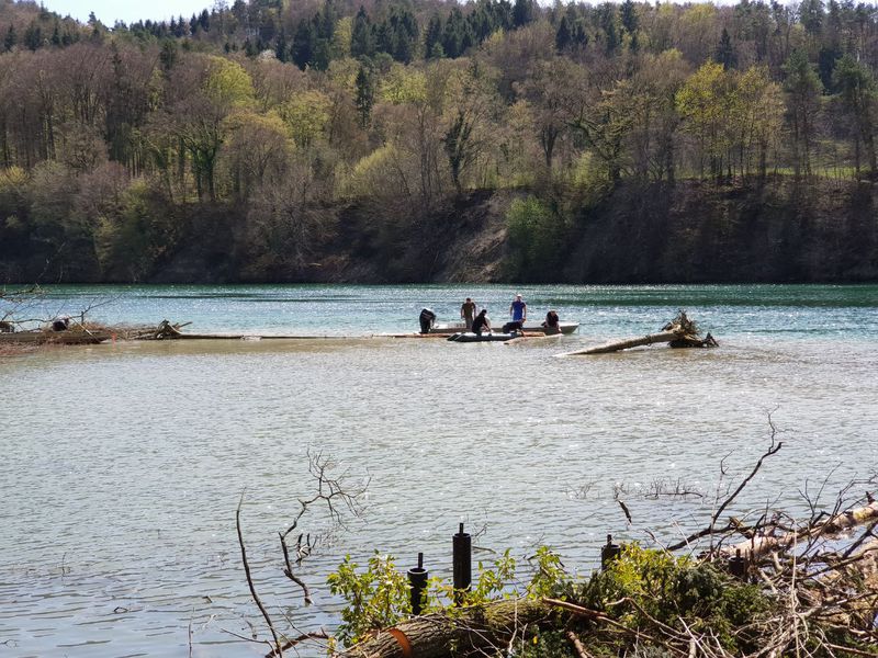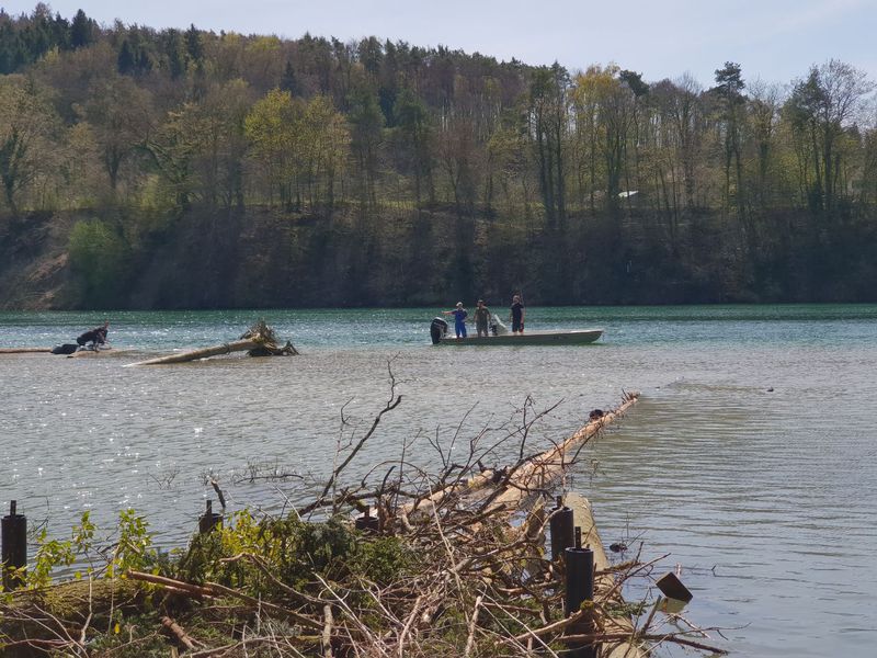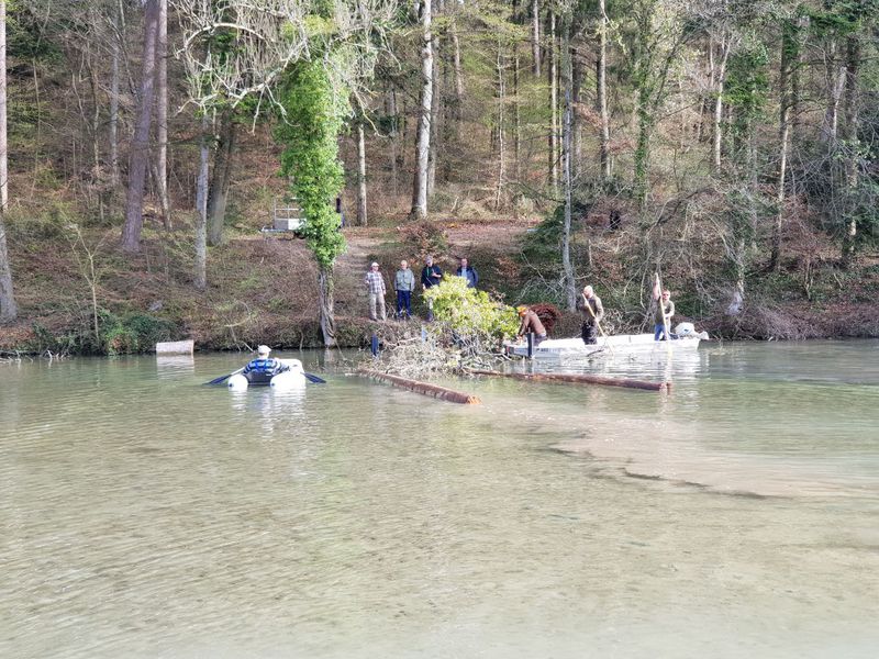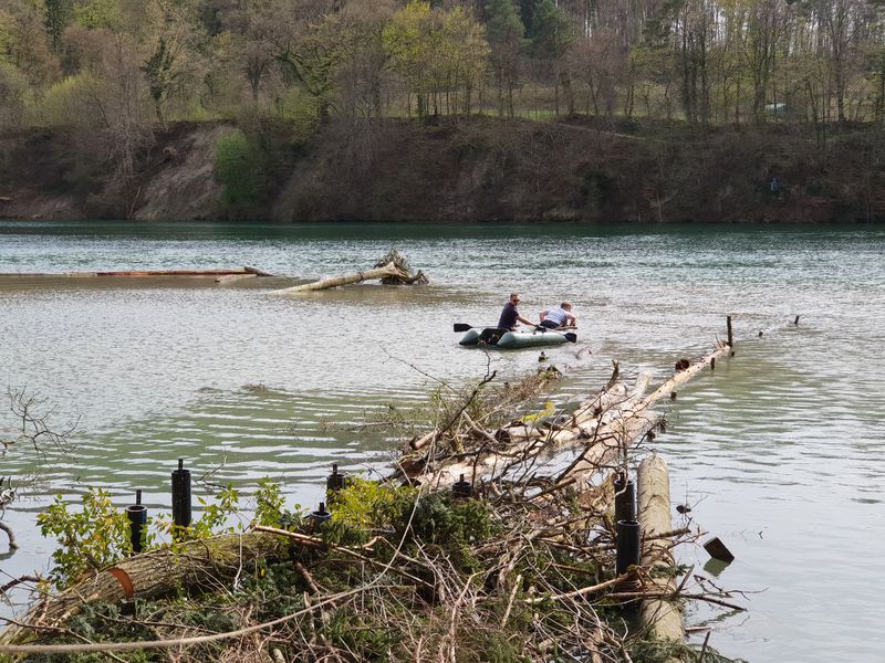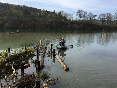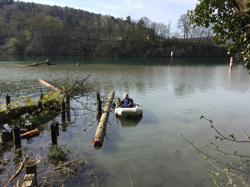 Unser zweiter Arbeitseinsatz im Jahr 2018 begann um 8.00 Uhr mit 14 motivierten Helfern. Unser Ziel war die Erschaffung von Unterschlupfmöglichkeiten für die Fischbrut im Laufenloh sowie Nestmöglichkeiten für Vögel, Enten und Schwäne. Die Pfosten des abgebauten Stegs konnten wir hierbei zur Befestigung von Bäumen im Wasser nutzen. Zur Befestigung wurde natürliches Hanfseil benutzt. Hier ein Dankeschön an die Spender der Baumstämme und den Ästen. Die mit dem Kraftwerk Eglisau abgesprochenen Massnahmen konnten wir wie geplant an diesem Tag fertigstellen. Die Äste wurden an den vorhandenen Pfosten der Renaturierungsmassnahmen befestigt und bieten nun jede Menge Unterschlupf und Brutmöglichkeiten. Alle Helfer waren sehr motiviert und mit Hilfe von vier Booten ging die Arbeit zügig voran. Für das leibliche Wohl wurde natürlich auch gesorgt und die Stimmung unter den Helfern sowie das Wetter war hervorragend. Danke an Alle. Eine super Aktion für unsere Natur.